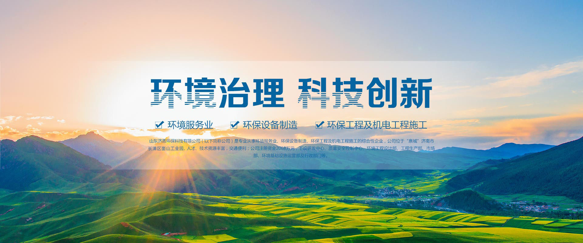 山東濟恩環??萍加邢薰荆ㄒ韵潞喎Q公司)是專業從事大氣污染治理、中水及凈水處理、節能供熱設備的研發生產銷售及環境設施節能運營于一體的綜合性生態建設供應商,公司位于“泉城”濟南市長清區崮山工業園,人才、技術資源豐富,交通便利,公司注冊資金6780萬元,下設研發中心、質量安全控制中心、環境及熱能技術部、工程部、市場部、設施運營部、財務部及行政部門等。